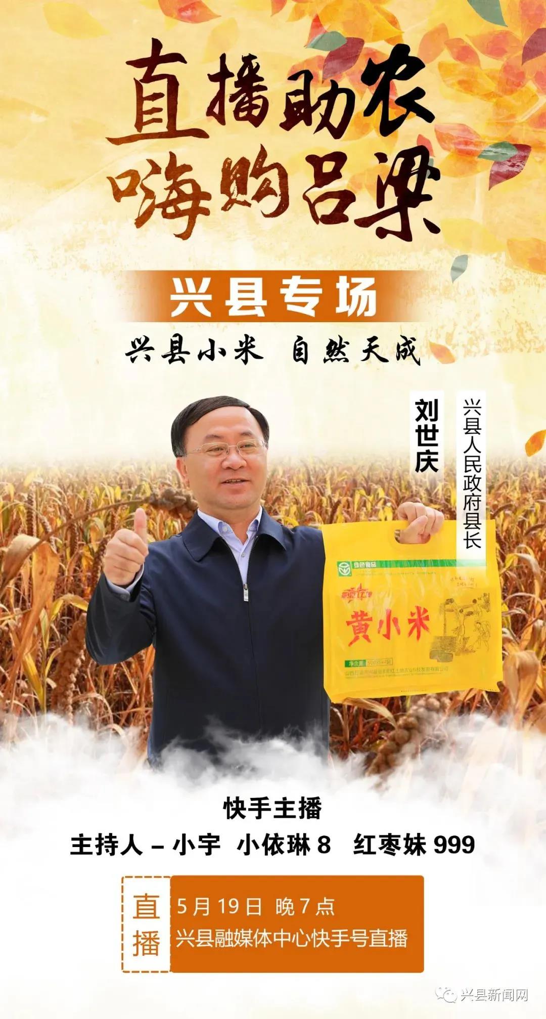 5月19日,興縣縣長劉世慶將現(xiàn)身直播間,為我縣特色農(nóng)產(chǎn)品進(jìn)行直播。